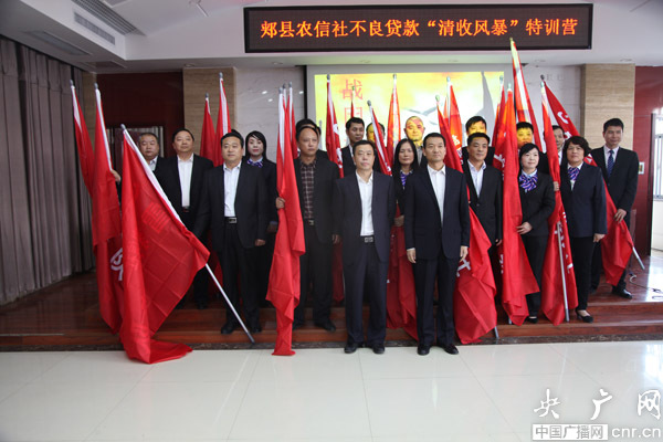 特訓營的開班,標志著郟縣農(nóng)信社“清收風暴”活動的號角已經(jīng)吹響,全體員工將思想統(tǒng)一到不良貸款清收工作上來,主動站在維護改革發(fā)展成果的高度,樹立敢打必勝的信念,頂住壓力,克服困難,排除干擾,打出氣勢、打出聲威、打出農(nóng)信社人的精氣神,確!扒迨诊L暴”活動全面勝利!
