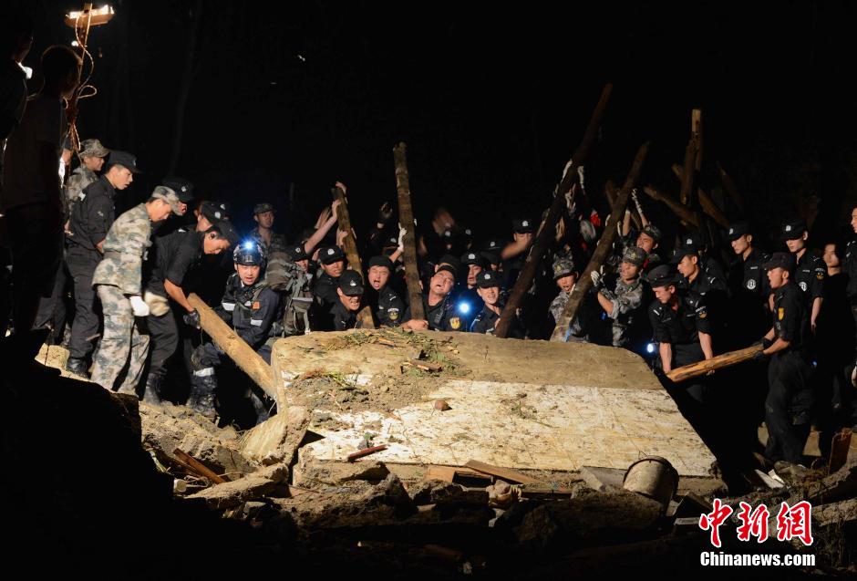 8月27日晚20時30分許,貴州省福泉市道坪鎮(zhèn)英坪村小壩組發(fā)生山體滑坡,有20戶民房被埋。截止目前,已致6人死亡,21人失去聯(lián)系。災難發(fā)生后,當?shù)卣约跋馈⒐、醫(yī)護人員火速趕赴現(xiàn)場開展救援。 中新社發(fā) 吳儒波 攝 圖片來源:CNSPHOTO