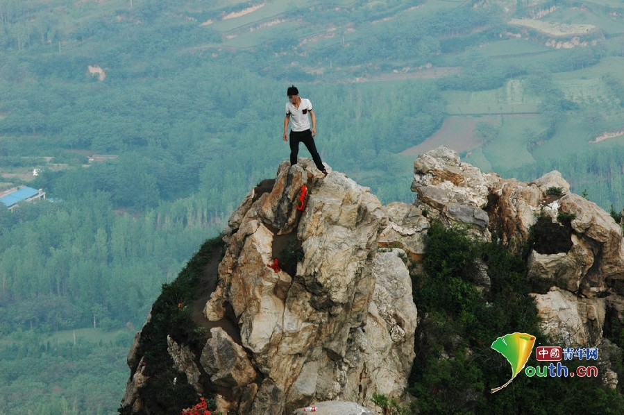 央廣網(wǎng)河南分網(wǎng)消息 2015年05月03日,河南省鄭州市,“五一”小長假期間,新鄭軒轅故里始祖山上游客爆滿,幾名年輕人爬上幾百米高懸崖絕壁上拍照留影,更有家長帶著自己孩子玩起了驚險動作。