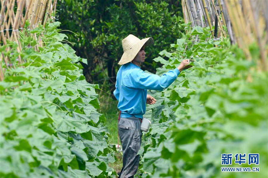 5月5日,福州市閩侯縣南通鎮(zhèn)瓜山村村民在修整瓜秧。當(dāng)日是二十四節(jié)氣中的立夏,福建省福州市閩侯縣南通鎮(zhèn)蔬菜基地一派繁忙景象,當(dāng)?shù)夭宿r(nóng)利用晴好天氣搶抓農(nóng)時,精耕細作,爭取有個好收成。新華社記者 姜克紅 攝