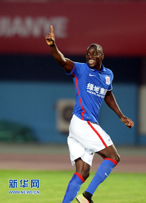 6月11日,上海申花隊球員登巴巴慶祝進球。