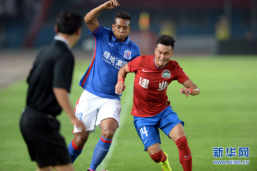 6月11日,河南建業(yè)隊14號球員伊沃(左)在比賽中防守。 當日,中超聯(lián)賽第12輪河南建業(yè)主場對陣上海申花的比賽打響,最終,雙方上半場各進一球,上海申花與河南建業(yè)握手言和。 新華網(wǎng)發(fā)(王曉飛攝)