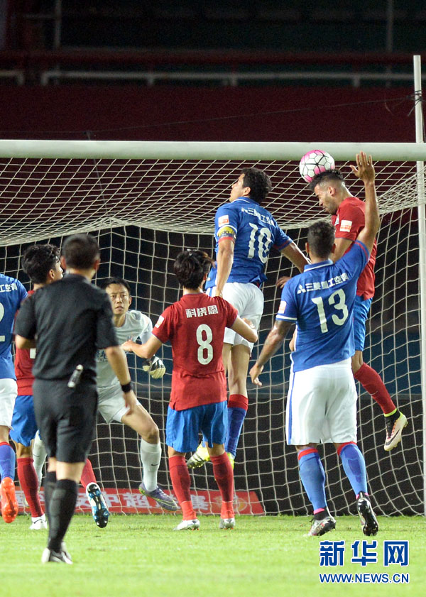 6月11日,河南建業(yè)隊9號哈維爾頭球破門。 當日,中超聯(lián)賽第12輪河南建業(yè)主場對陣上海申花的比賽打響,最終,雙方上半場各進一球,上海申花與河南建業(yè)握手言和。 新華網(wǎng)發(fā)(王曉飛攝)