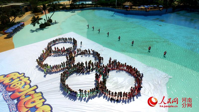央廣網(wǎng)河南分網(wǎng)消息 6月17日上午,六百余名穿著靚麗比基尼的美女齊聚河南新密劉寨鎮(zhèn)樂(lè)海水世界,在工作人員的指引下擺成奧運(yùn)五環(huán)造型,現(xiàn)場(chǎng)吸引不少人駐足圍觀,拍照留念。