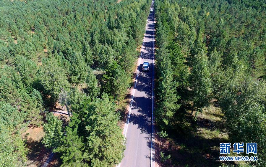 •    車輛行駛在內(nèi)蒙古伊金霍洛旗境內(nèi)的樟子松基地(9月7日攝)!