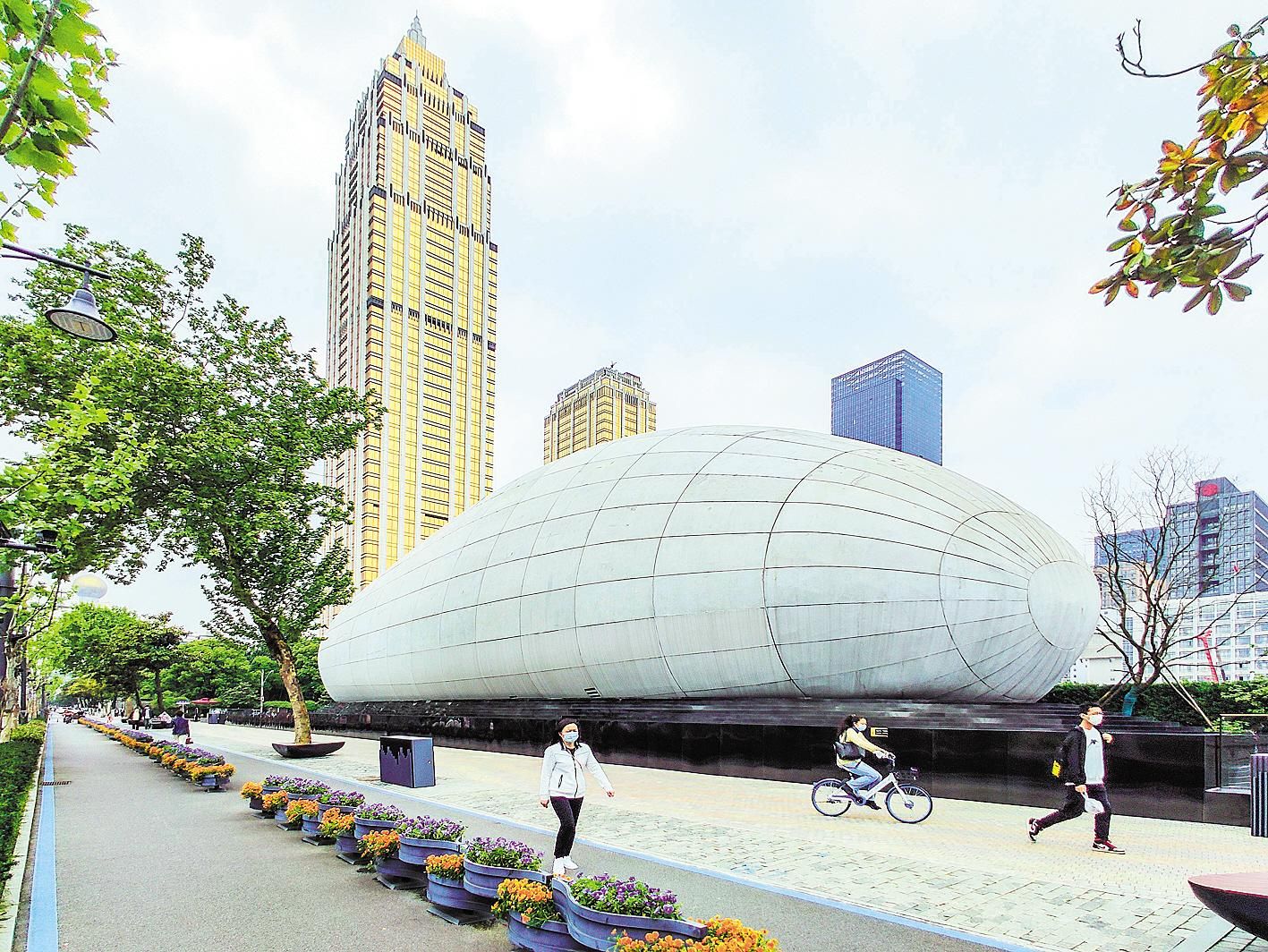 4月25日,在武漢市漢口沿江大道與五福路交會處,一座長約30米,高約10米的蛋形建筑格外引人注目。這顆“巨蛋”呈水泥灰色,在“巨蛋”西側,有兩部電動扶梯通往裝修精美的地下空間。據(jù)了解,“巨蛋”是名為“長江之石”的景觀雕塑,其地下空間,則是“長江之門藝術展示中心”。未來這里將以自然元素為載體,用藝術的方式展示長江自然景觀。 (湖北日報全媒記者 梅濤 攝)