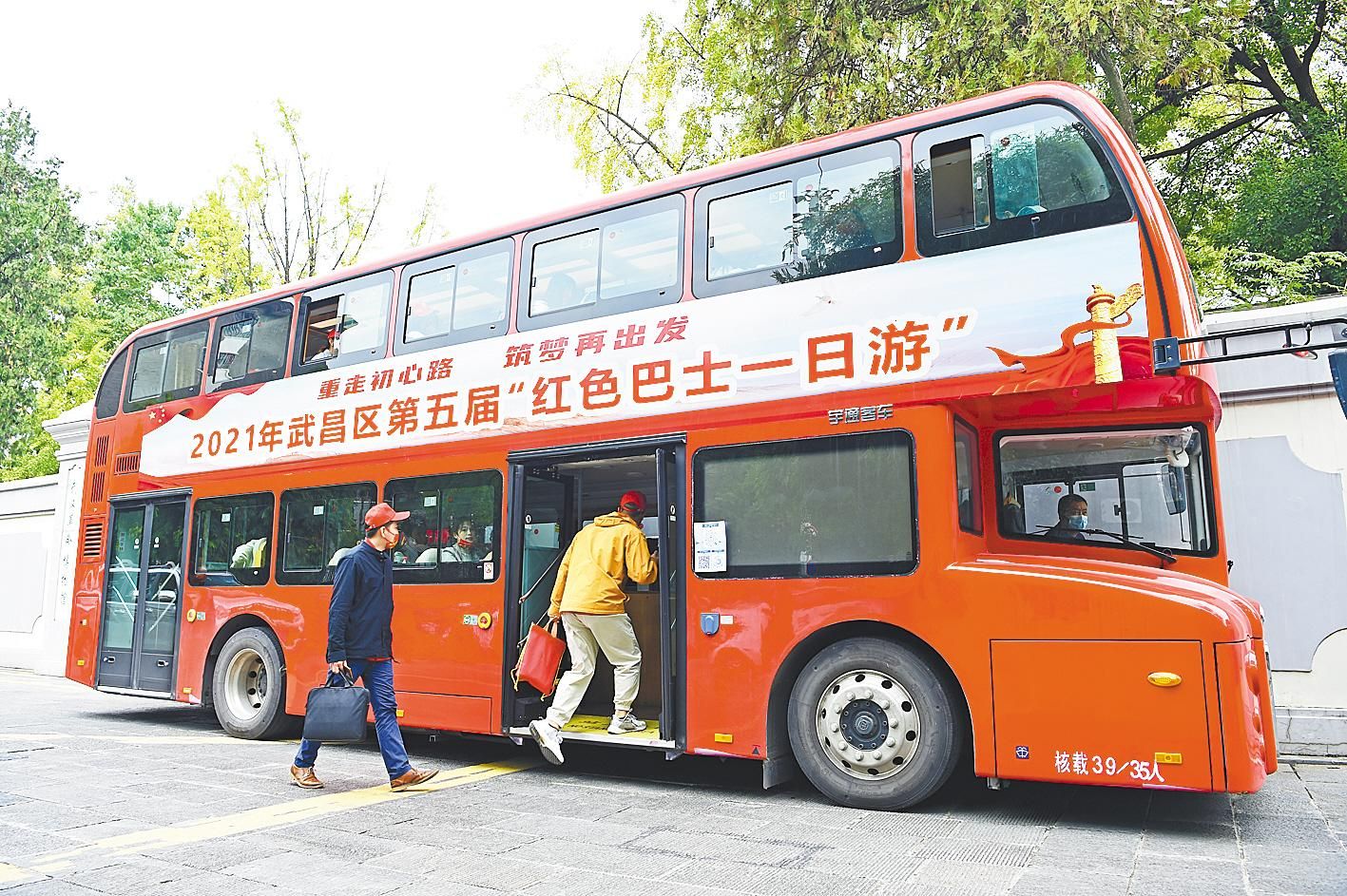 10月22日,武漢市武昌區(qū)第五屆“紅色巴士一日游”在中央農(nóng)民運(yùn)動(dòng)講習(xí)所舊址發(fā)車。發(fā)車活動(dòng)現(xiàn)場(chǎng),來自武漢大學(xué)的學(xué)生代表發(fā)出倡議,號(hào)召大家乘坐紅色巴士游覽中央農(nóng)民運(yùn)動(dòng)講習(xí)所舊址、毛澤東同志舊居等6個(gè)紅色景點(diǎn),感受武昌歷史名城的魅力。
