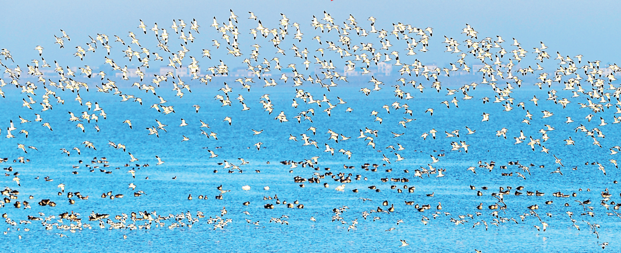 在武漢沉湖濕地自然保護(hù)區(qū)萬鳥翱翔,場面壯觀。長江日報記者史偉 攝