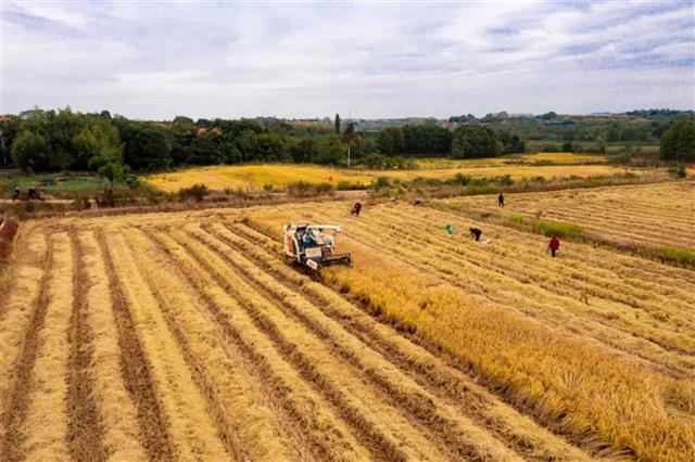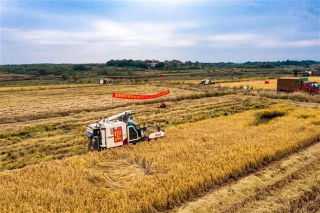 這片稻田位于武漢國家現(xiàn)代農(nóng)業(yè)產(chǎn)業(yè)科技創(chuàng)新中心“產(chǎn)業(yè)融合區(qū)”——中華科技產(chǎn)業(yè)園,是武漢高科集團所屬武漢高農(nóng)集團與金廣農(nóng)業(yè)公司共同打造的航天育種示范基地,種植的“太空香稻”品種,曾于2020年5月搭乘航天器遨游太空。今年6月1日和6月8日分兩期種植,收割后將進行品比,篩選優(yōu)勢品種。