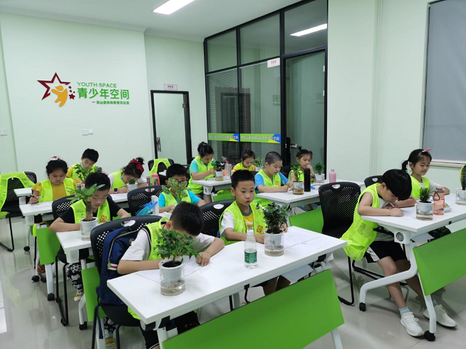 圖為:洪山街道林嶼岸春天社區(qū)青少年空間“練習(xí)專注力”主題夏令營(yíng)