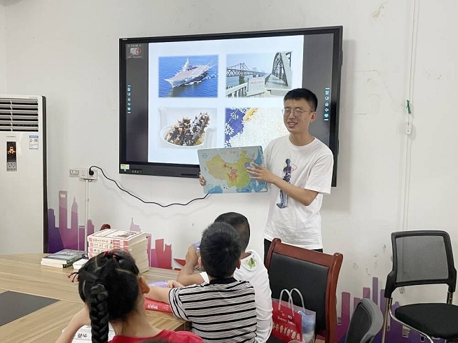 在洪山街道大華社區(qū),志愿者老師以視頻方式展示中國(guó)共產(chǎn)黨發(fā)展歷程中的關(guān)鍵時(shí)間節(jié)點(diǎn)及事件,用相關(guān)時(shí)期的繪畫作品為切入點(diǎn),引導(dǎo)學(xué)生學(xué)習(xí)紅船精神、井岡山精神和長(zhǎng)征精神的內(nèi)涵及革命故事、詩(shī)歌。