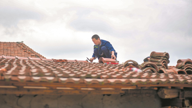 昨日,極目新聞?dòng)浾咴谖錆h市蔡甸區(qū)奓山街友愛(ài)村看到,在遭受龍卷風(fēng)和強(qiáng)暴雨后,一些村民已經(jīng)開(kāi)始修繕受損的房屋,希望早日恢復(fù)正常的生產(chǎn)生活。楚天都市報(bào)極目新聞?dòng)浾邉⒅袪N攝