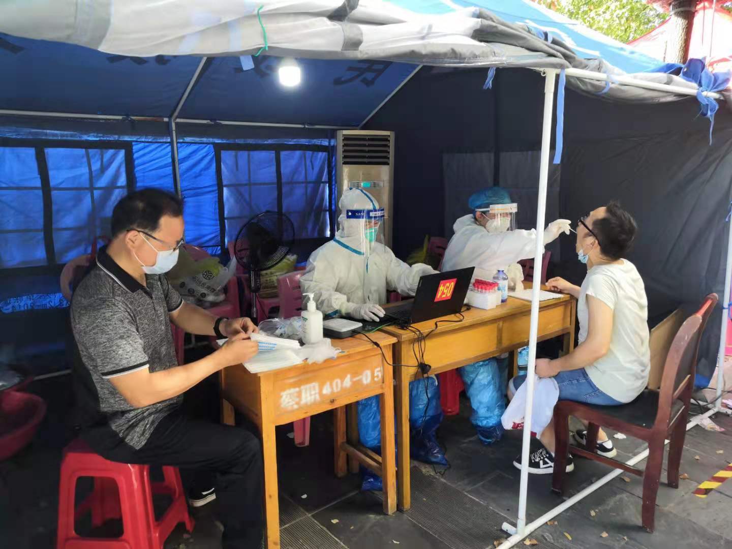 這支以“80后”“90后”醫(yī)護(hù)人員為主的“核酸檢測(cè)小分隊(duì)”,動(dòng)作嫻熟、操作規(guī)范,大部分有過抗疫經(jīng)歷,并參與過去年5月武漢首次全民核酸檢測(cè)工作!半m然有空調(diào),但我們3個(gè)采集點(diǎn)都是在露天搭建的帳篷,三面圍著一面敞開著,棚內(nèi)溫度和棚外溫度差別并不大,天氣炎熱,但是沒有一個(gè)醫(yī)護(hù)人員申請(qǐng)休息,與疫情賽跑,爭(zhēng)分奪秒,堅(jiān)持把檢測(cè)任務(wù)出色完成!辈痰閰^(qū)中醫(yī)醫(yī)院急診科護(hù)士李歡說。