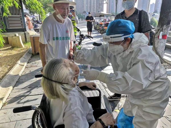 蔡甸區(qū)中醫(yī)醫(yī)院急診科護(hù)士李歡為行動(dòng)不便的老人進(jìn)行核酸檢測(cè)采樣。記者袁滿 攝