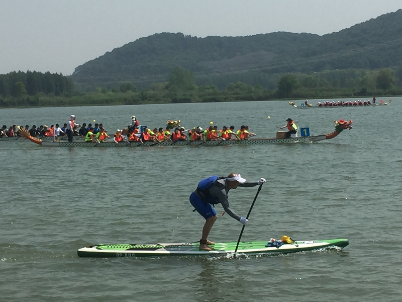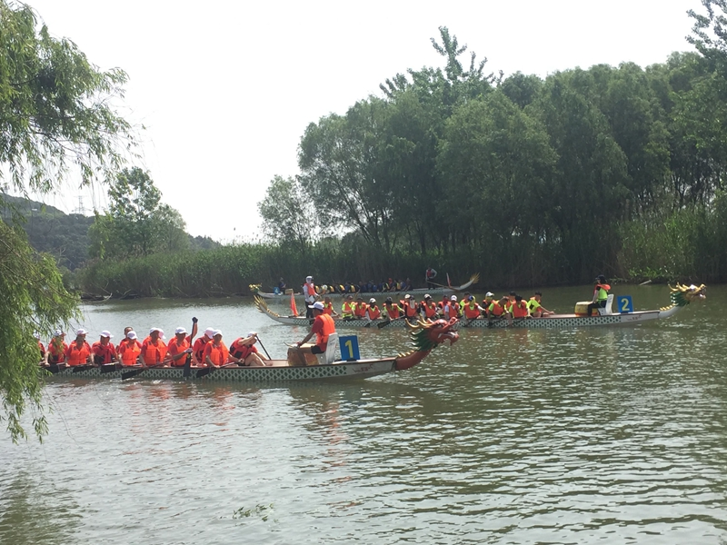 5月2日,金龍水寨和武漢野生動物王國之間的西湖,波光粼粼的湖面上,4條龍舟隨著鏗鏘有力的鼓點(diǎn)聲疾馳而過。湖面上運(yùn)動員們動作整齊劃一,奮力劃槳,你追我趕。湖岸上觀眾的助威聲此起彼伏,與運(yùn)動員們的吶喊聲相呼應(yīng)。