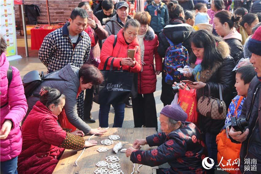 湖南郴州:古村年味濃 年會迎新春【7】 人民網(wǎng)郴州2月5日電 (李芳森)套花、花根、糖花現(xiàn)場制作,舞龍表演,手寫春聯(lián)……坳上古村是湖南郴州迄今保存較為完整的古建筑群之一,2016年被列入中國傳統(tǒng)村落第四批名錄。坳上古村自唐代始就有農(nóng)歷臘月大年前“趕年會”習(xí)俗,通過挖掘整合各種傳統(tǒng)年俗和非遺文化資源,喚起游客對傳統(tǒng)年俗文化的整體記憶。