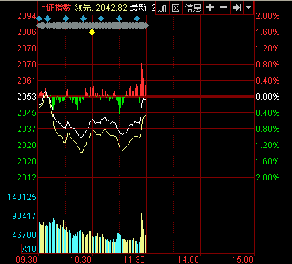 新華網(wǎng)消息 今日早盤兩市低開(kāi)后小幅走高,盤中一度翻紅;后在權(quán)重拖累下大幅殺跌,滬指盤中一度跌近1%;后在券商帶動(dòng)下小幅反彈,隨后窄幅震蕩。臨近早間收盤,在石化雙雄、券商、銀行的拉動(dòng)下,大盤急速走高。截至午盤,滬指報(bào)2051.05點(diǎn),下跌2.03點(diǎn),跌幅0.10%,成交506.60億元;深成指報(bào)7283.95點(diǎn),下跌14.18點(diǎn),跌幅0.19%,成交704.74億元;創(chuàng)業(yè)板指報(bào)1454.65點(diǎn),下跌9.93點(diǎn),跌幅0.68%,成交176.78億元。
