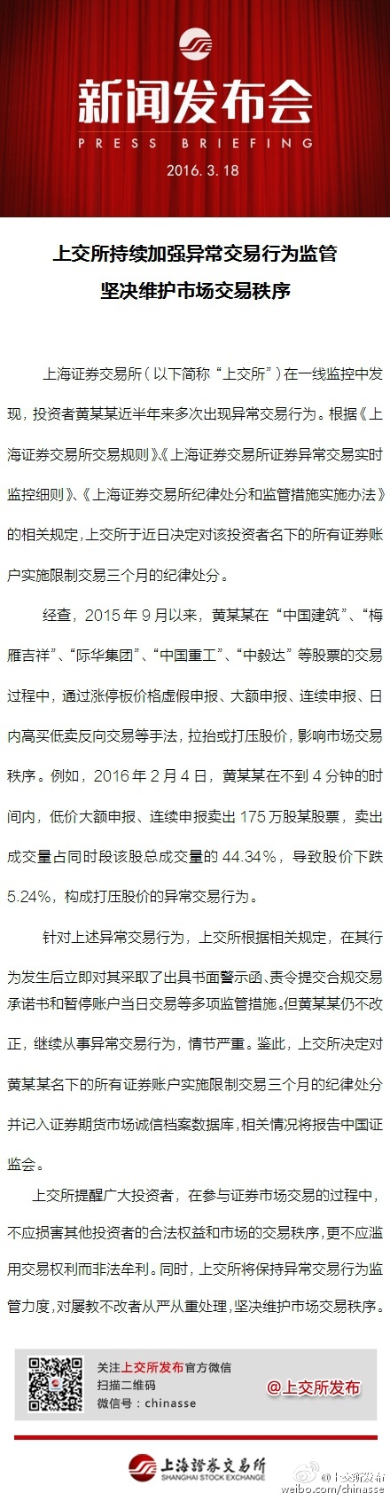 上交所:加強(qiáng)異常交易行為監(jiān)管 堅(jiān)決維護(hù)市場交易秩序