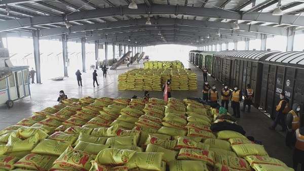 在我國糧食主產(chǎn)區(qū)黑龍江,春耕備耕生產(chǎn)到了關(guān)鍵時刻,各地春耕物資需求急劇增加。中國鐵路哈爾濱局集團(tuán)有限公司針對春耕重點(diǎn)地區(qū)化肥集中到達(dá),組織各相關(guān)車站及時開辟春耕物資“綠色通道”,確保春耕物資第一時間運(yùn)抵農(nóng)田。2月以來,中國鐵路哈爾濱局集團(tuán)有限公司累計搶卸化肥超過30萬噸。佳木斯車務(wù)段寶泉嶺站站長周磊介紹:“2月15日以來,我們車站最多的一天到達(dá)83輛,站內(nèi)化肥待卸車多達(dá)107車。由于裝卸公司裝卸勞動力不足,化肥一旦形成積壓,會影響農(nóng)民春耕生產(chǎn)。因此,我們協(xié)調(diào)地方政府,組織企業(yè),增加人力、機(jī)具、車輛,確;饰镔Y及時卸運(yùn)交付到位。”
