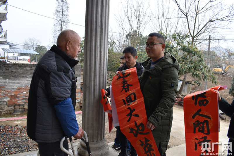 扶貧干部給張緒火老人送來春聯(lián)