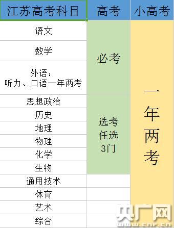 江蘇高考新方案框架今天出爐,考試科目為“3+3”,英語聽力和口語實行一年兩考。2018年秋季新入學的高一學生將在2021年高考時使用這個新方案。