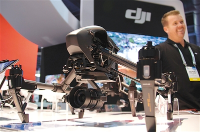 2016年1月9日,在美國拉斯韋加斯消費(fèi)電子展上的大疆新款無人機(jī)“悟”Inspire 1 Pro。 新華社記者 楊 磊攝