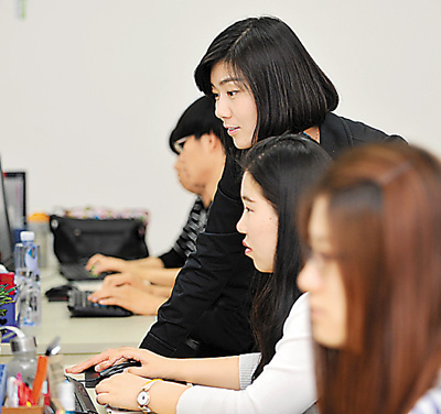 4月28日,電商孵化器總經(jīng)理張薇(中)與入駐的大學(xué)生創(chuàng)業(yè)者進(jìn)行交流和項目指導(dǎo)。她從青年創(chuàng)業(yè)者轉(zhuǎn)身為創(chuàng)業(yè)服務(wù)者。 連 漪攝(新華社發(fā))