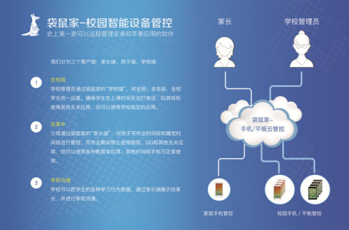 “全國(guó)中小學(xué)生智慧監(jiān)測(cè)與評(píng)價(jià)服務(wù)工程“是一個(gè)面向全國(guó)四十萬(wàn)余所中小學(xué)的項(xiàng)目,為保證學(xué)生能使用手機(jī)正常學(xué)習(xí)而不受到“游戲干擾”,該項(xiàng)目在學(xué)生手機(jī)中集成了一款名為“袋鼠家”的校園智能設(shè)備管控系統(tǒng),保證學(xué)生的手機(jī)在上課和寫(xiě)作業(yè)時(shí)受到“智能管控”,只允許使用指定的應(yīng)用,卻禁用所有的游戲且限制社交工具的使用時(shí)長(zhǎng),這才保證了課堂紀(jì)律與教學(xué)質(zhì)量。