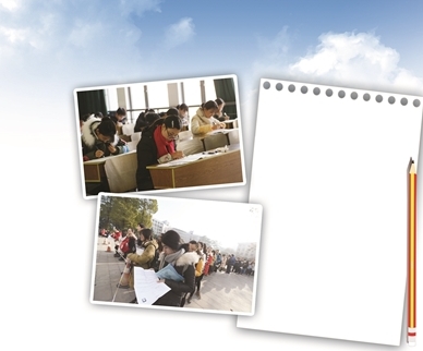 考生們進場前還要“抱下佛腳”,不過考題的知識點跨度很大。 新華報業(yè)視覺中心記者 邵丹 攝