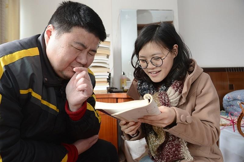 很多為周順導(dǎo)讀過(guò)的學(xué)子都自愧不如,“他的記憶力特別好,能夠清晰記得某句話在哪本書上的哪一章、哪一節(jié)、哪一行。”在曾做過(guò)導(dǎo)讀的大四學(xué)生王樹澤看來(lái),“他的好記性是一遍一遍練出來(lái)的。每次讀書他都會(huì)要求再次復(fù)習(xí)!薄八貏e珍惜讀書的時(shí)間,約定好兩小時(shí),如果遲到了,就一定要在規(guī)定時(shí)間之外延長(zhǎng)!敝驹刚呖拙磦セ貞洝.(dāng)兩人聊到電磁學(xué)公式,正是孔敬偉比較薄弱的知識(shí)點(diǎn),周順便轉(zhuǎn)換身份,輔導(dǎo)她學(xué)習(xí)。 -