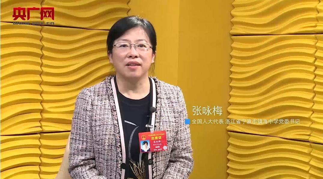 全國人大代表、浙江省寧波市鎮(zhèn)海中學(xué)黨委書記張詠梅接受采訪