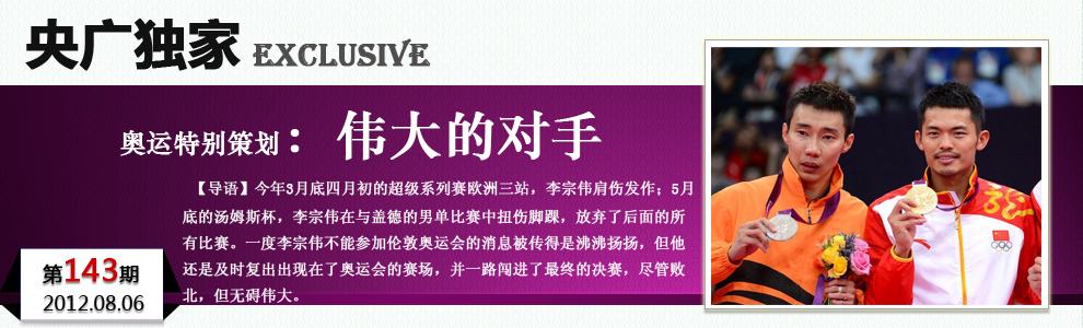 * 李宗偉:因受傷只準(zhǔn)備兩星期 兩屆第2這是我的命 * 白巖松:林丹李宗偉瑜亮爭(zhēng)輝 弱項(xiàng)突破最可貴 |