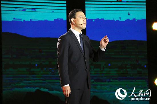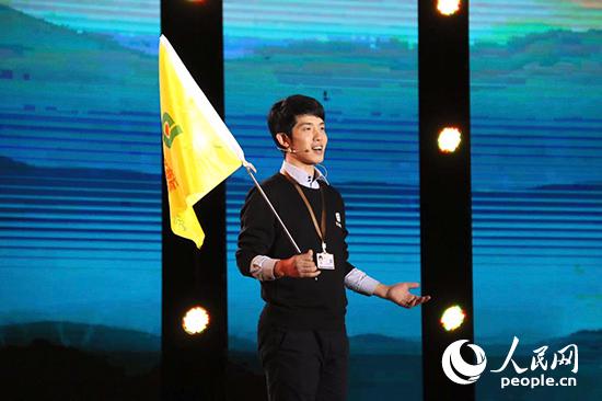 舞臺上舉著導(dǎo)游旗講解的劉凱。實習(xí)生王趙童 攝