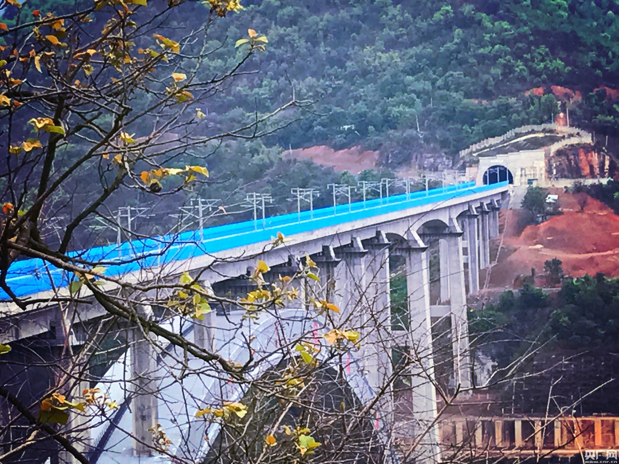 2017年4月23日,記者跟隨最美鐵路活動探訪南盤江特大橋。南盤江特大橋是目前世界最大跨度客貨共用高速鐵路特大橋。 -