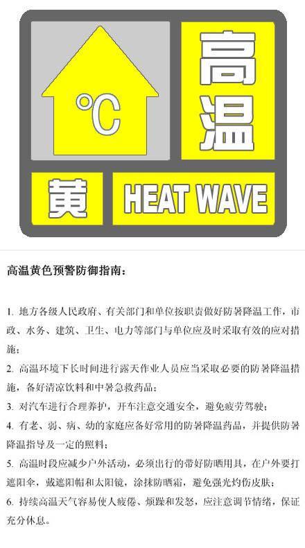 北京發(fā)布高溫黃色預(yù)警 最高氣溫將達(dá)35℃以上,北京市氣象臺2017年7月9日6時(shí)整發(fā)布高溫黃色預(yù)警信號,預(yù)計(jì)9日至11日,北京市大部分地區(qū)最高氣溫將達(dá)35℃以上,天氣晴熱,請注意防范。(央視記者 胡亞利)