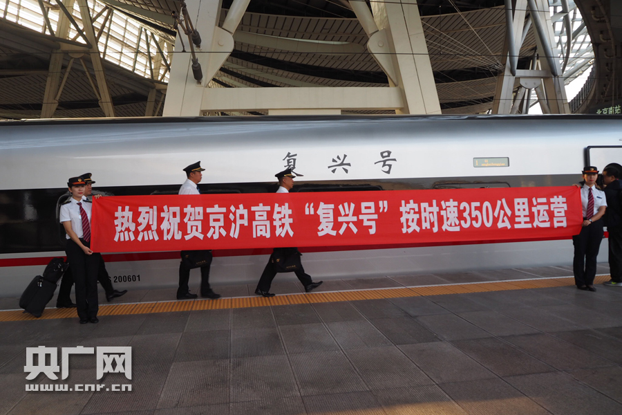 從9月21日起,鐵路部門將安排7對“復(fù)興號”動車組在京滬高鐵按時速350公里運行,分別擔當G1/G2、G3/G4、G5/G6、G7/G8、G9/G10、G13/G14、G17/G18次,京滬之間全程運行時間在4個半小時左右。 -