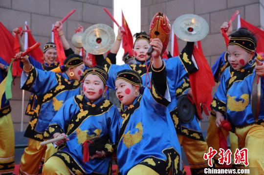 圖為現(xiàn)場(chǎng)溫嶺大奏鼓表演 梅柏林 攝
