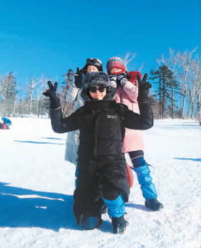 為了節(jié)省時(shí)間和精力,下山時(shí)我們選擇了“天下第一漂”。長(zhǎng)約5公里的自然雪道從山頂一貫到底,看著就叫人躍躍欲試。教練簡(jiǎn)單地指導(dǎo)之后從背后一推,人一下就滑了出去。揚(yáng)起的雪粒打在臉上有些疼,逐漸加快的滑行速度叫人忍不住驚叫。這種感覺(jué)并沒(méi)有持續(xù)多久,由于雪道不夠陡,我們都停在了半路。這下可犯了難,三個(gè)人只能慢慢摸索技巧,一路上翻翻停停,到最后一小程才暢快地直沖到底。