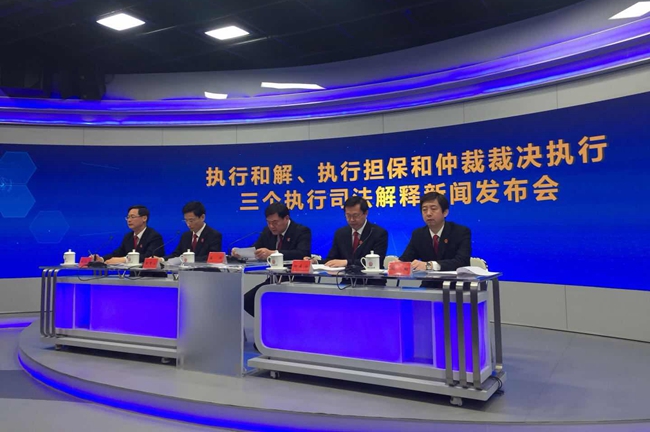 央廣網(wǎng)北京2月23日消息(記者孫瑩 高藝寧) 23日,最高人民法院發(fā)布《關(guān)于執(zhí)行和解若干問題的規(guī)定》(以下簡稱《執(zhí)行和解規(guī)定》)、《關(guān)于執(zhí)行擔(dān)保若干問題的規(guī)定》(以下簡稱《執(zhí)行擔(dān)保規(guī)定》)和《關(guān)于人民法院辦理仲裁裁決執(zhí)行案件若干問題的規(guī)定》(以下簡稱《仲裁裁決執(zhí)行規(guī)定》)三項(xiàng)司法解釋。記者在發(fā)布會(huì)現(xiàn)場了解到,這三項(xiàng)司法解釋作為執(zhí)行規(guī)范體系的重要組成部分,將于2018年3月1日開始施行。
