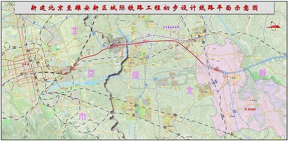 新建北京至雄安新區(qū)城際鐵路工程初步設(shè)計線路平面示意圖。(圖片來自中國鐵路總公司微信公眾號)