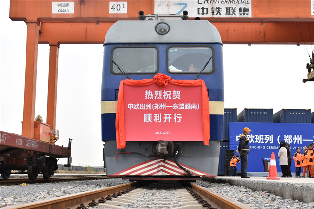 2018年12月7日,鄭州至東盟越南的中歐班列開行。(鄭州國(guó)際陸港開發(fā)建設(shè)有限公司供圖)