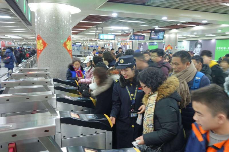 北京地鐵迎來春節(jié)返程高峰。(北京地鐵公司供圖)