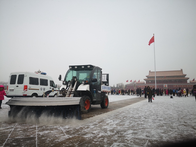 北京環(huán)衛(wèi)集團(tuán)工作人員在天安門廣場進(jìn)行除雪作業(yè)。(央廣網(wǎng)發(fā) 溫瑩瑩攝)