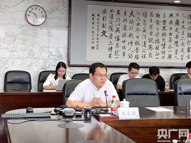 圖為洪俊杰在研討會(huì)上發(fā)言。(央廣網(wǎng)記者 馬文靜 攝)