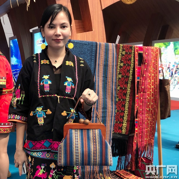 海南展區(qū)的黎繡織品(中央廣播電視總臺(tái)央廣記者 李展鴻 攝)