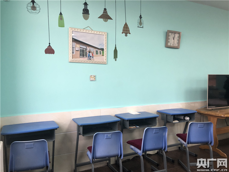 孩子們臥室內(nèi),擺放著幾張課桌,胡艷蘋常教他們看圖識字(央廣網(wǎng)記者 王晶 攝)