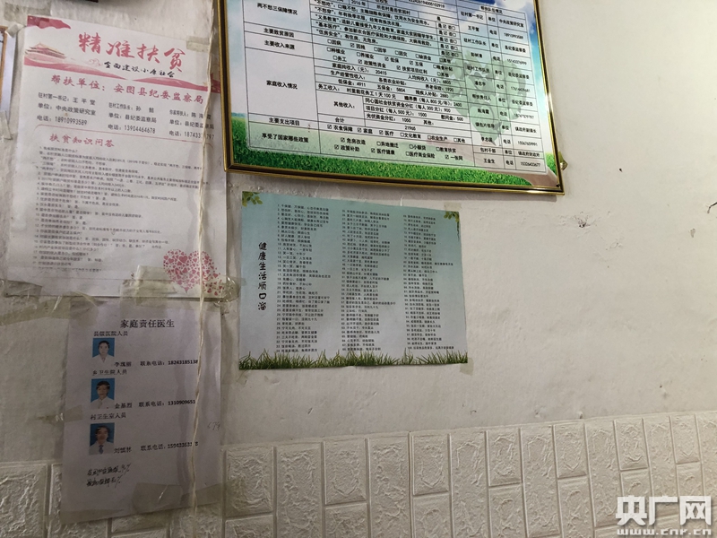 賈如美家中墻上便貼著醫(yī)生聯(lián)系方式(央廣網(wǎng)記者 王晶 攝)