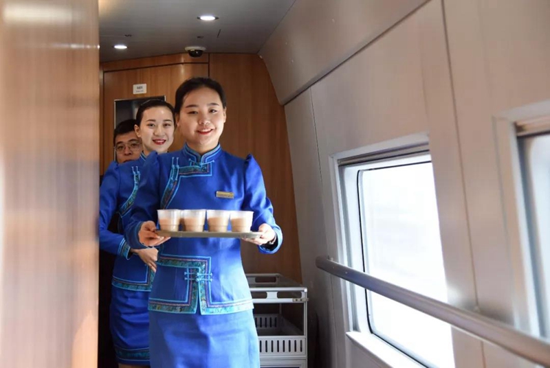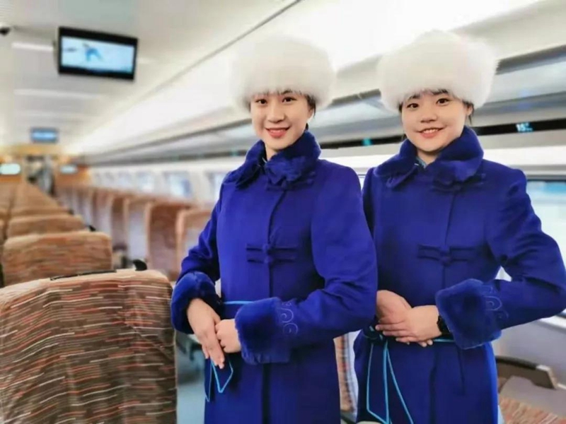 高鐵乘務(wù)員身著民族特色服裝(央廣網(wǎng)發(fā) 中國(guó)鐵路供圖)