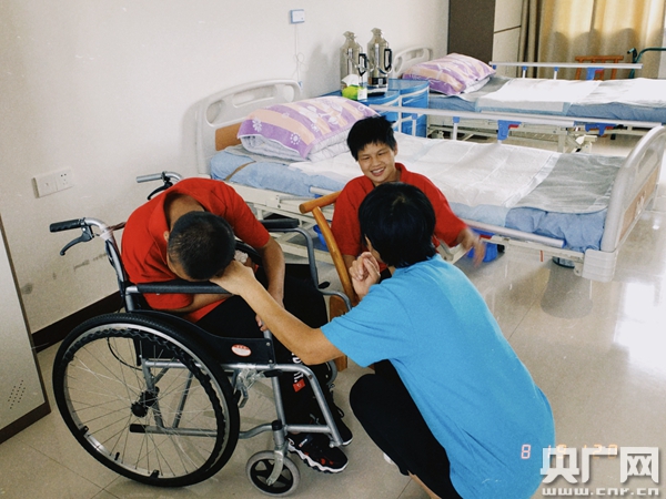 來(lái)到托養(yǎng)中心后,張鐸兄妹變化不少。“你看,現(xiàn)在妹妹見(jiàn)人,也會(huì)笑一笑了。”對(duì)他們的變化,護(hù)工張秀蓮感觸最深。每隔一個(gè)小時(shí),她就要到房間看他倆一次,晚上也要起來(lái)看三次,更換尿不濕,蓋被子,早上五點(diǎn)多又得早早起來(lái),給兄妹倆洗漱,把飯端到房間喂他們。