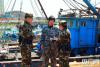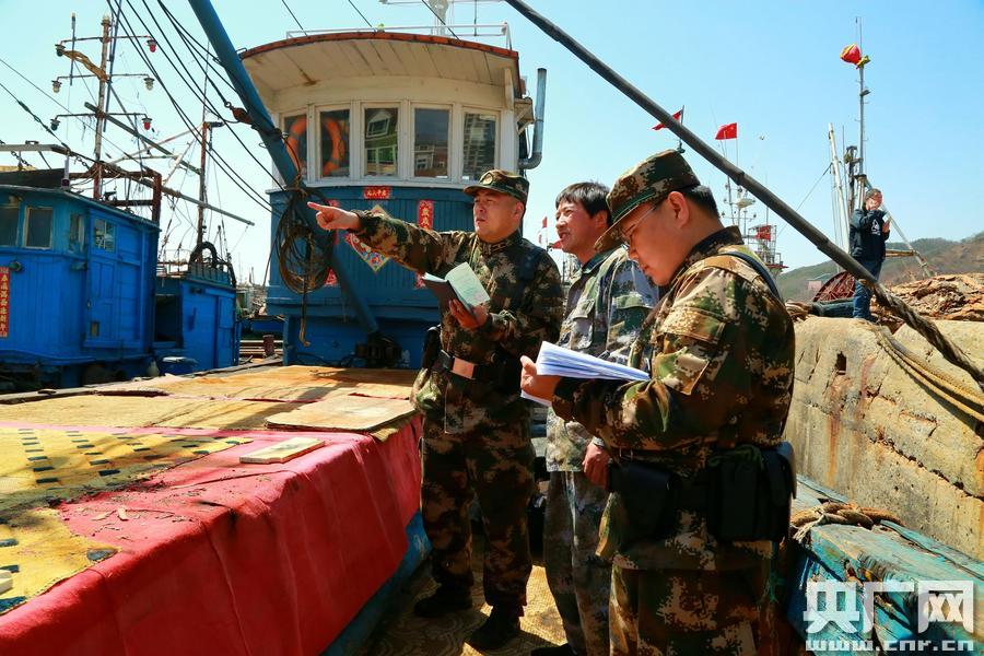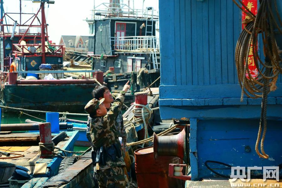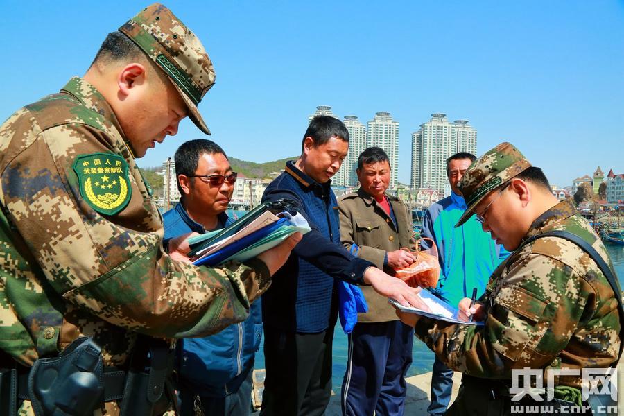 •      邊防官兵正在進行漁船民登記,并進行證件查驗